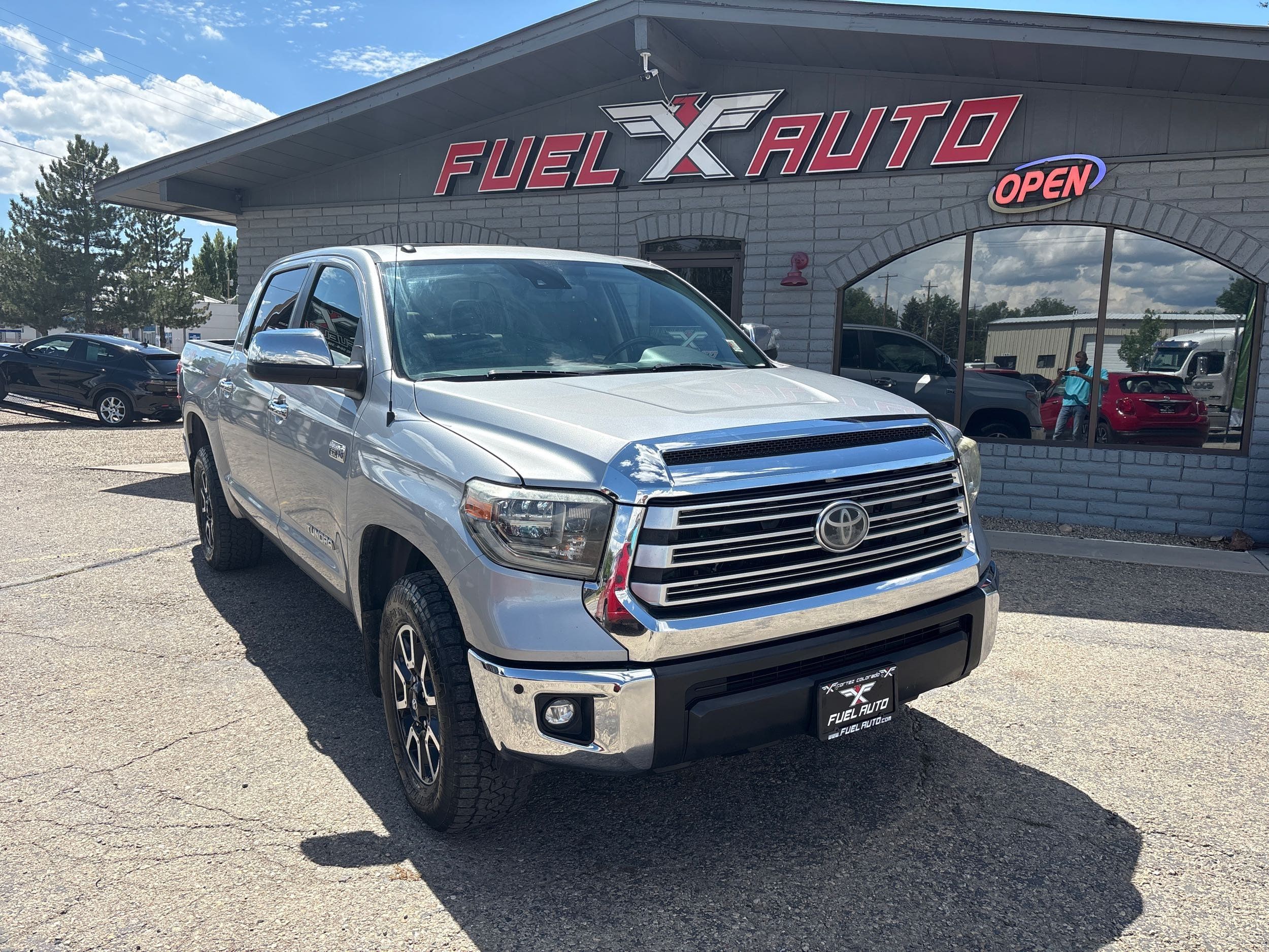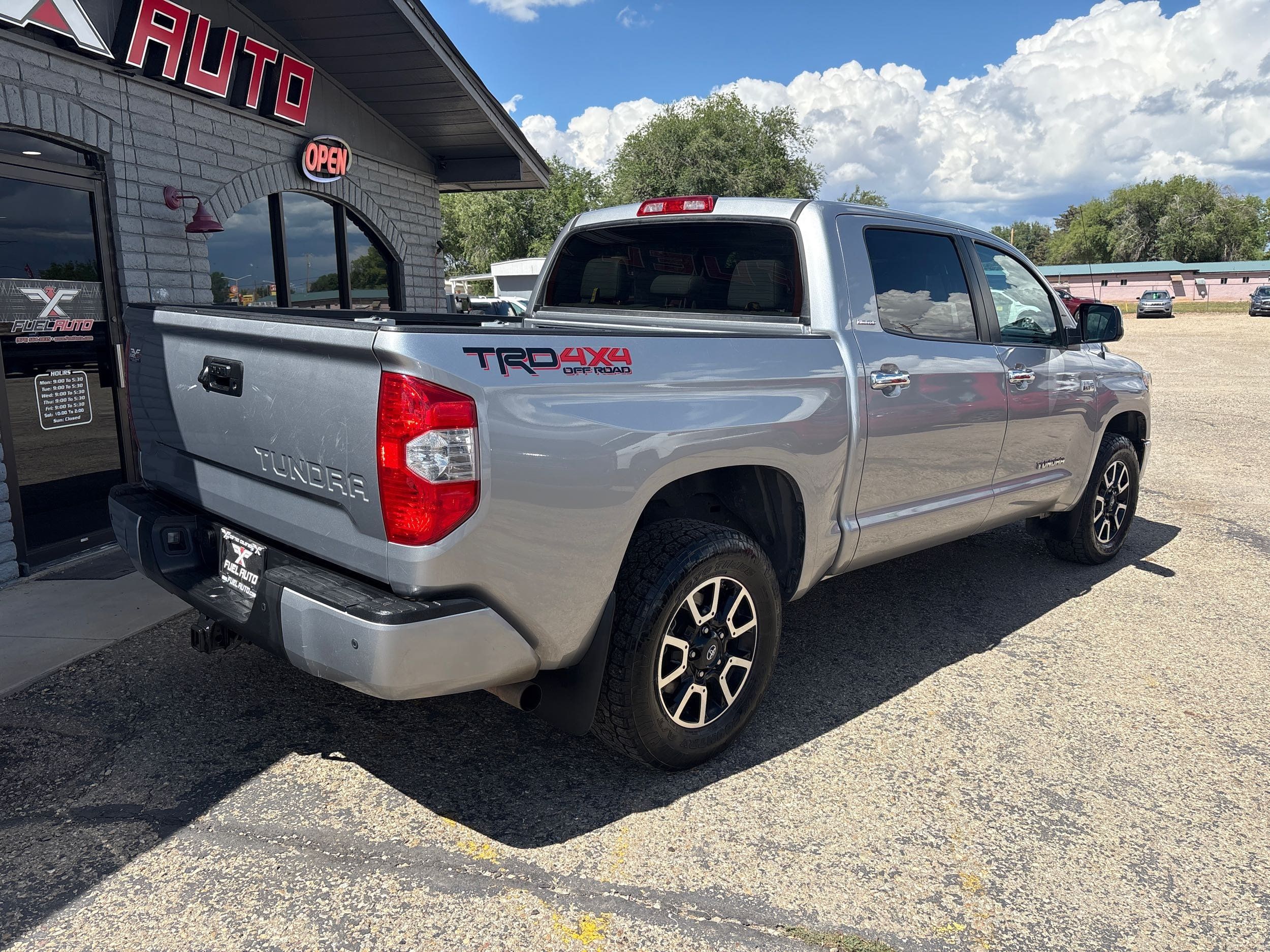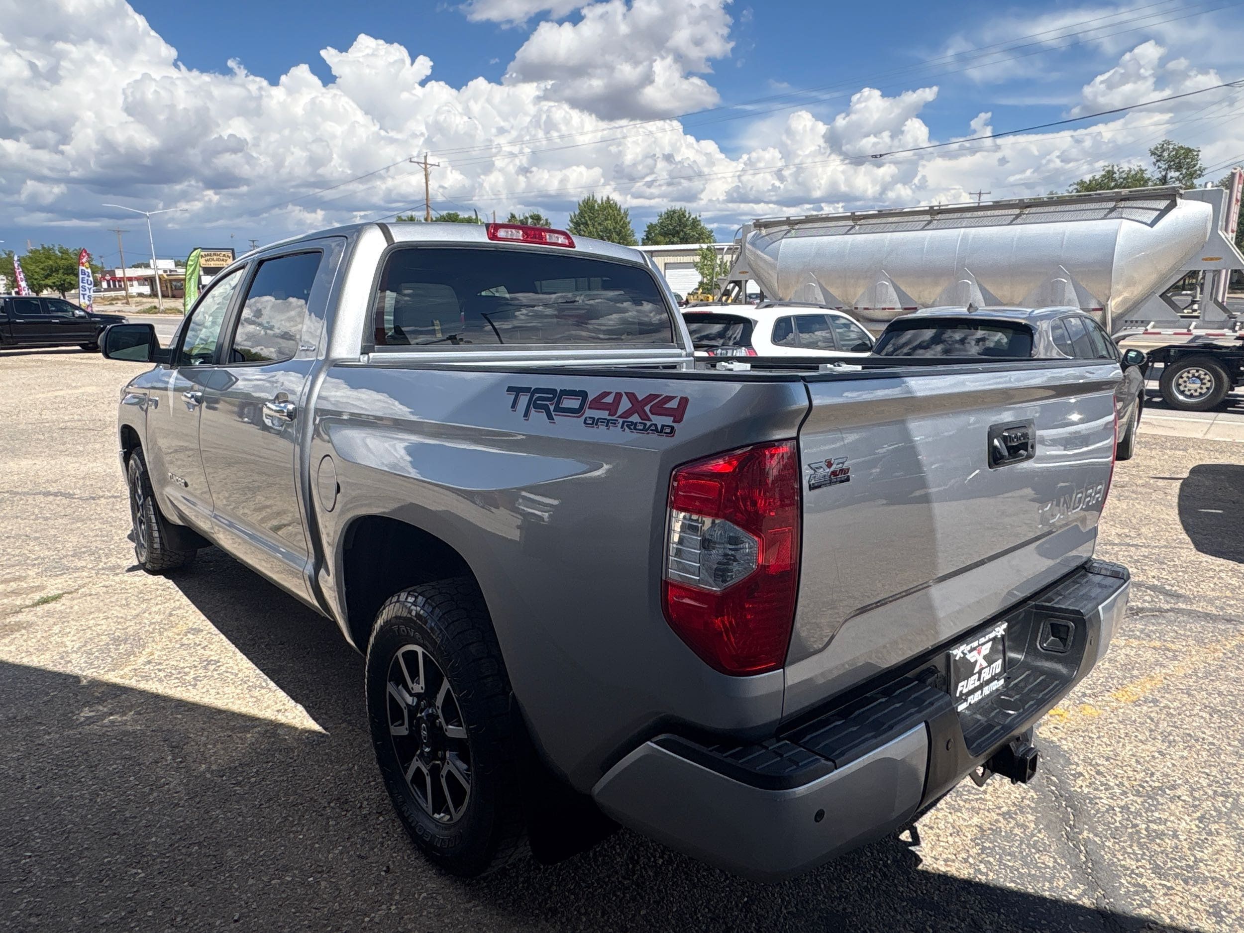 2018 Toyota Tundra Limited, a pickup truck designed to elevate your driving experience. Dressed in an elegant Silver Sky Metallic exterior, this Crew Cab marvel is powered by a robust 5.7L V8 engine delivering an impressive 381 horsepower and 401 lb-ft of torque. Whether you're tackling rugged terrains or cruising city streets, its advanced 4WD drivetrain ensures optimal performance in any condition.