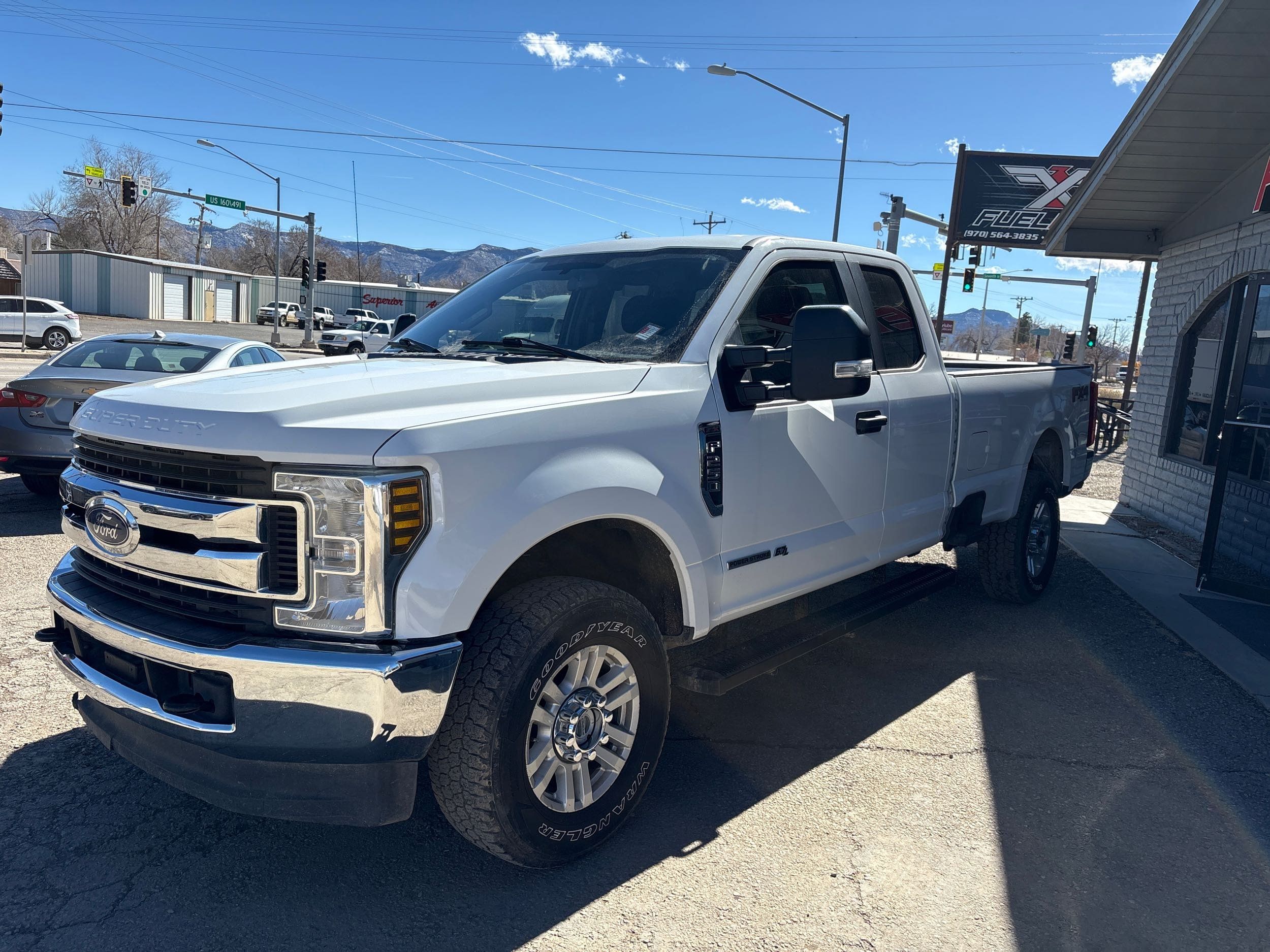 2019 Ford F-250 Super Duty XL, designed to tackle any challenge with ease. This robust pickup truck features an Extended Cab, providing ample space for passengers and gear while maintaining a sleek profile in its striking Oxford White exterior. Under the hood lies a formidable Power Stroke 6.7L Biodiesel Turbo V8 engine that delivers an impressive 450 horsepower, ensuring you have all the strength needed for heavy-duty tasks or adventurous off-road escapades.